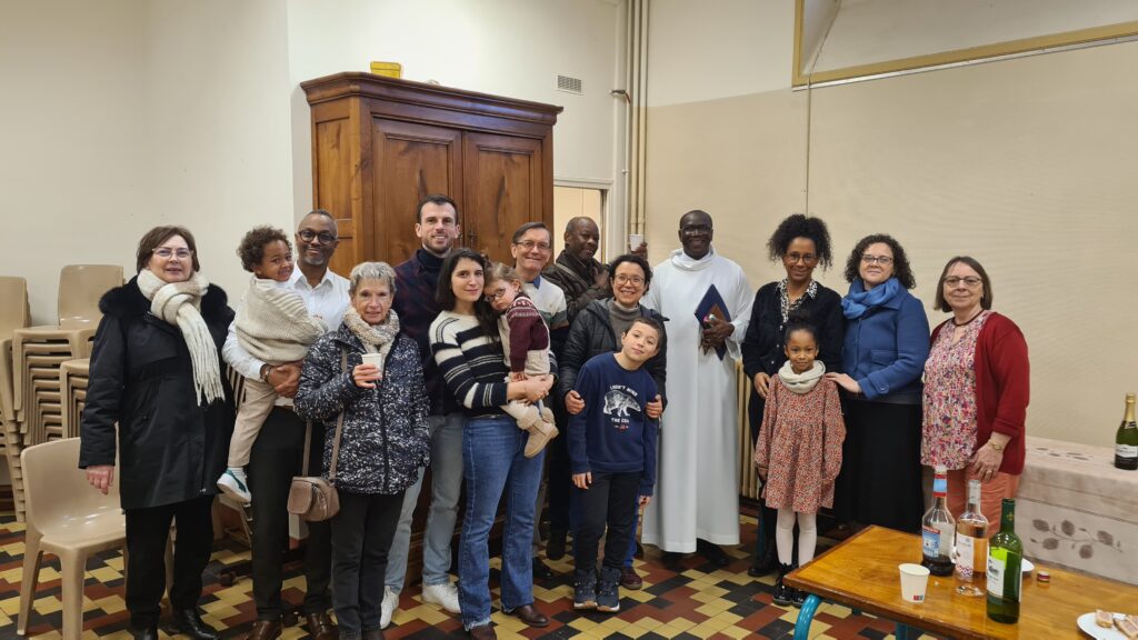 Le Père Edmond, les enfants, leurs familles et les accompagnateurs de baptêmes célébrés à Sainte Agnès en 2025.